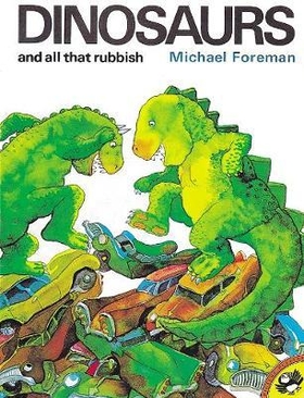 When at last his rocket is ready, he blasts off into space, leaving behind mounds of burning rubbish. The heat from the smouldering waste wakes the dinosaurs who have lain dormant underground for centuries. They are horrified when they see the state of the planet and quickly set to work, clearing the rubbish to allow the natural world to take over once more.