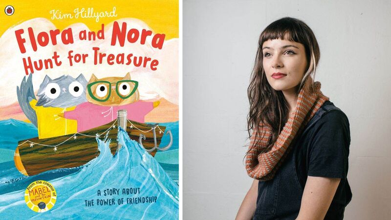 Author-illustrator Kim Hillyard and the cover of Flora and Nora Hunt for Treasure