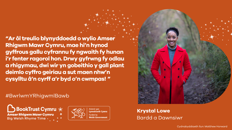 Ar ôl treulio blynyddoedd o wylio Amser Rhigwm Mawr Cymru, mae hi’n hynod gyffrous gallu cyfrannu fy ngwaith fy hunan i’r fenter ragorol hon. Drwy gyfrwng fy odlau a rhigymau, dwi wir yn gobeithio y gall plant deimlo cyffro geiriau a sut maen nhw’n cysylltu â’n cyrff a’r byd o’n cwmpas!