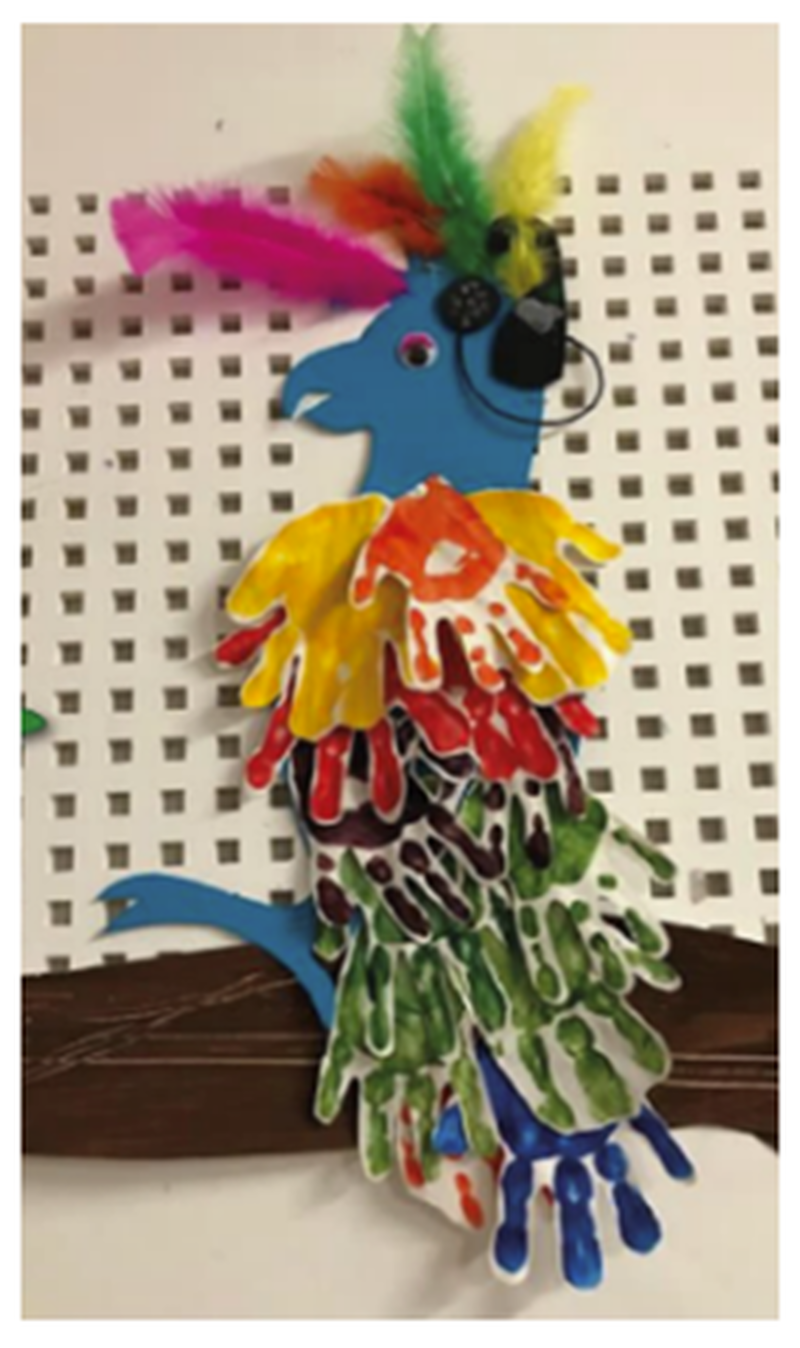 - Expressive Arts and Design: Make a handprint Ling Ling Bird bird like the one we made in the following image: