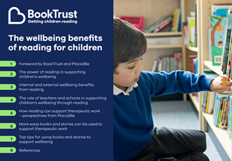 To help combat these worrying trends, BookTrust has produced a guide which includes both research evidence and actionable tips highlighting how reading enjoyment can improve children’s wellbeing. We are also really excited to feature some suggestions from Place2Be, drawing on their invaluable experience providing mental health support in schools.